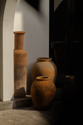 El Botellón es una pieza imponente y elegante, perfecta para la decoración de espacios amplios. Confeccionado en barro local de Tonalá, Jalisco, su diseño estilizado y su altura imponente crean una presencia majestuosa en cualquier entorno. Disponible en dos tamaños, cada Botellón es una obra de arte que resalta la belleza del barro natural.